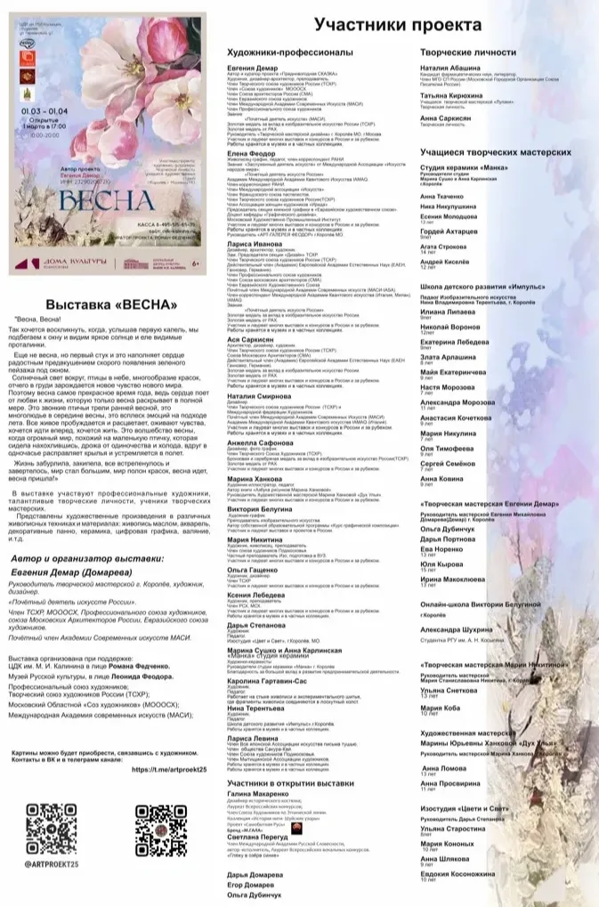 Выставка прошла в ЦДК им. Калинина г. Королёв (фойе 2 этаж) с 1 марта по 1 апреля 2026 года.